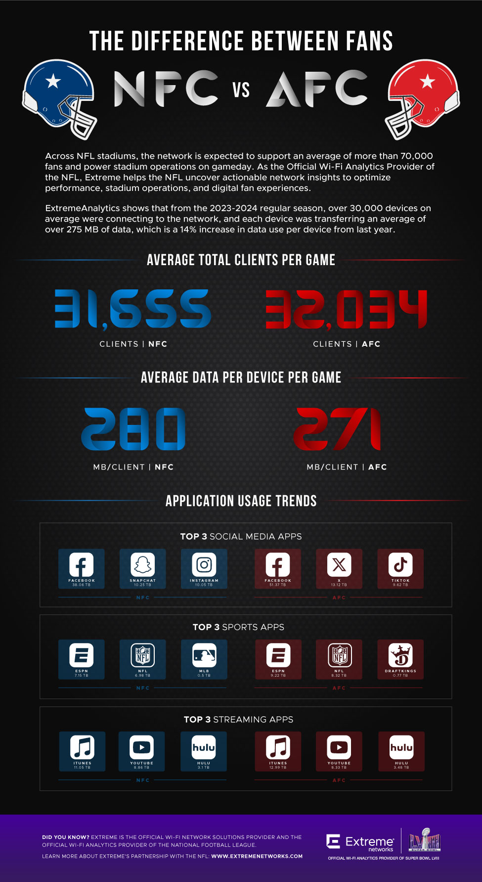 Check out how NFL fans engage throughout games across the AFC and NFC, emphasizing the pivotal role of technology in modern sports experiences. Uncover Wi-Fi analytics and gain actionable insights, empowering organizations to make informed decisions by gaining a better understanding of fan preferences and behaviors.