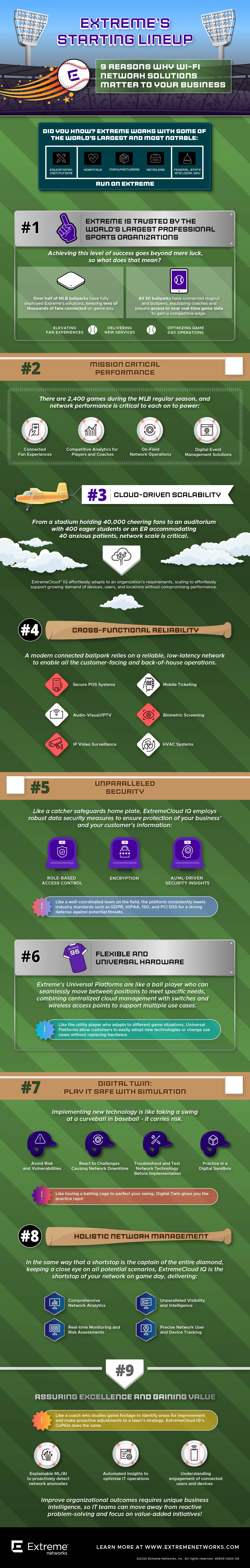 Take a TourDiscover how Extreme Networks' game-changing in-venue IT deployments translate to your unique technology deliverables! From MLB ballparks to your business, experience mission-critical performance, scalability, reliability, security and unparalleled network management.